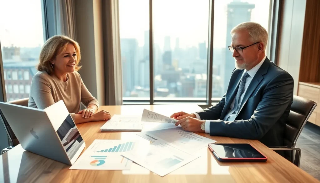 diverse professionals discussing property investment loans in a modern office.